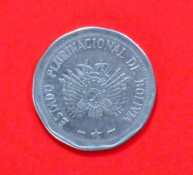 Bolivien, 2 Bolivianos (C17), 2010+, gebrauchte Erhaltung (used / ss)