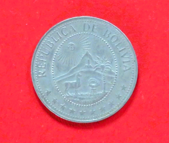 Bolivien, 20 Centavos (E, N plattiert), 1965-1973, gebrauchte Erhaltung (used / ss)