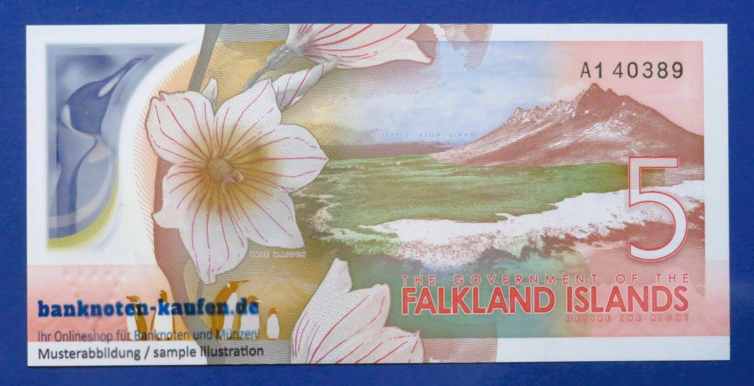 Produktinformation "Falkland Inseln, 5 Pounds, 2025, kassenfrisch (UNC), Polymer, P-20"