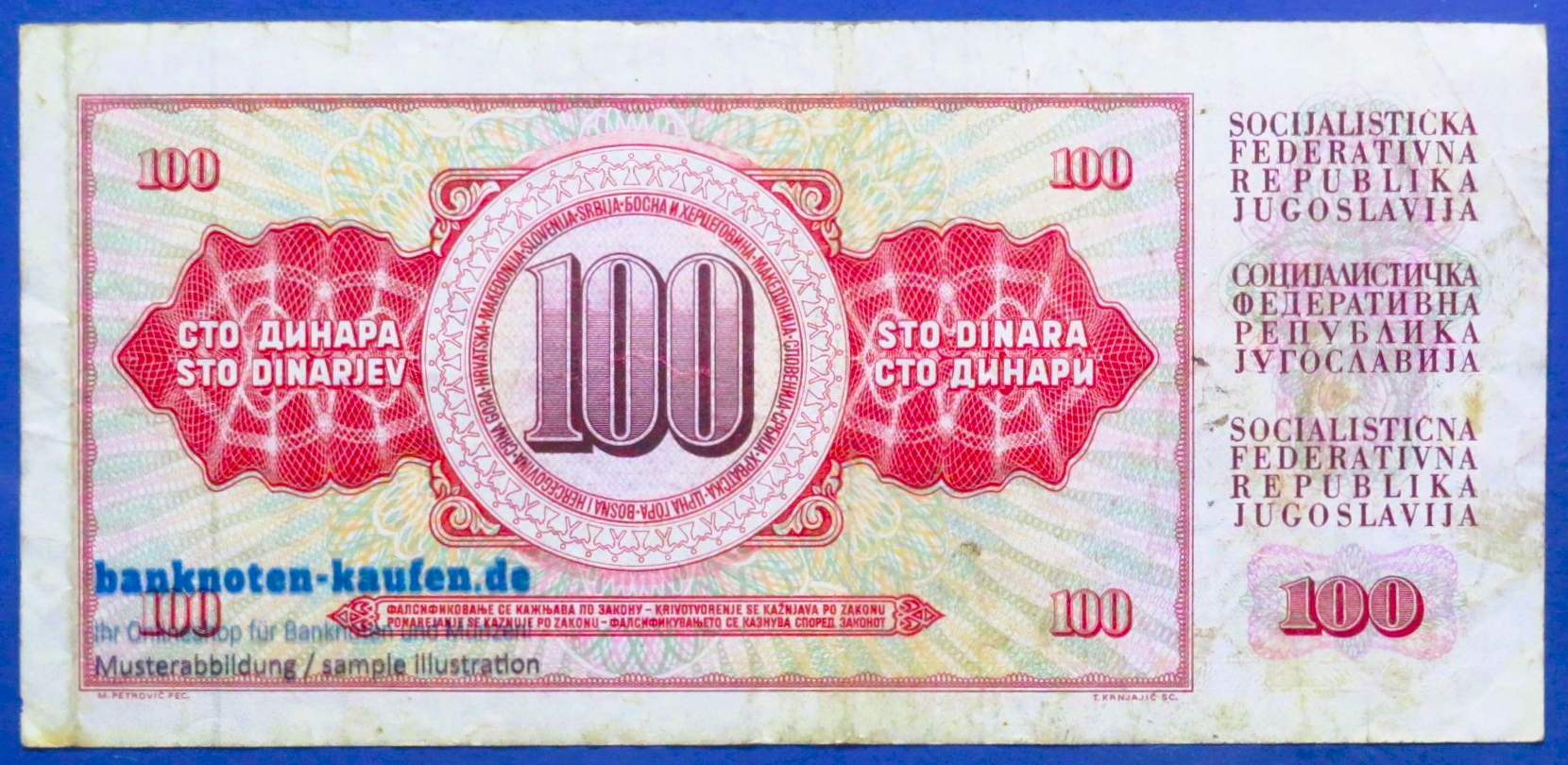 Produktinformation "Jugoslawien, 100 Dinara, 1986, gebraucht (USED / VF), P-90c"