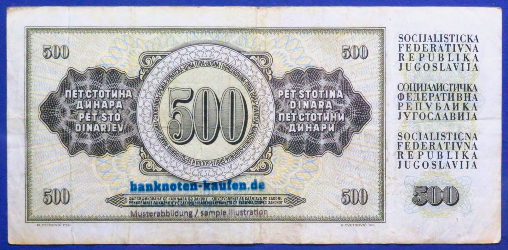 Produktinformation "Jugoslawien, 500 Dinara, 1981, gebraucht (USED / F), P-91b"