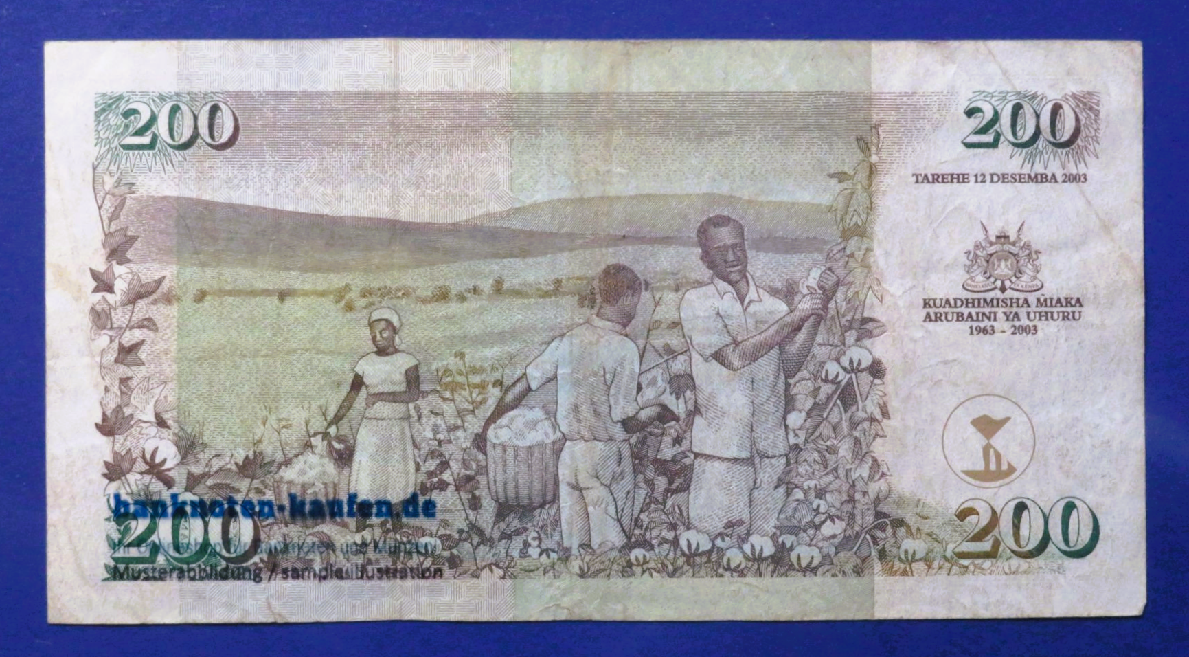 Produktinformation "Kenia, 200 Shillings, 2003, gebraucht (USED / VF), Gedenkausgabe, P-46"