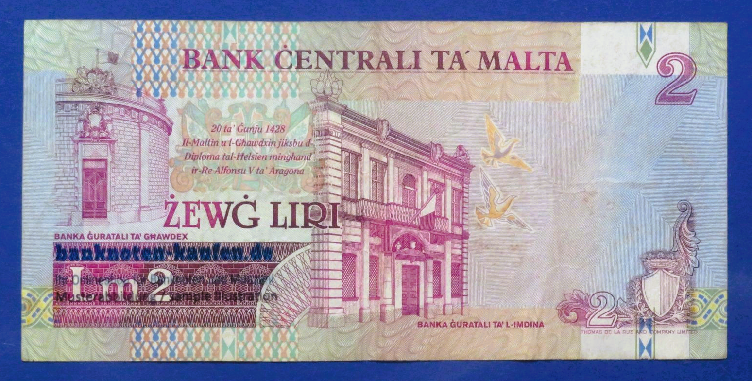 Malta, 2 Liri, L.1967 (1994), gebraucht (USED / VF), P-45c