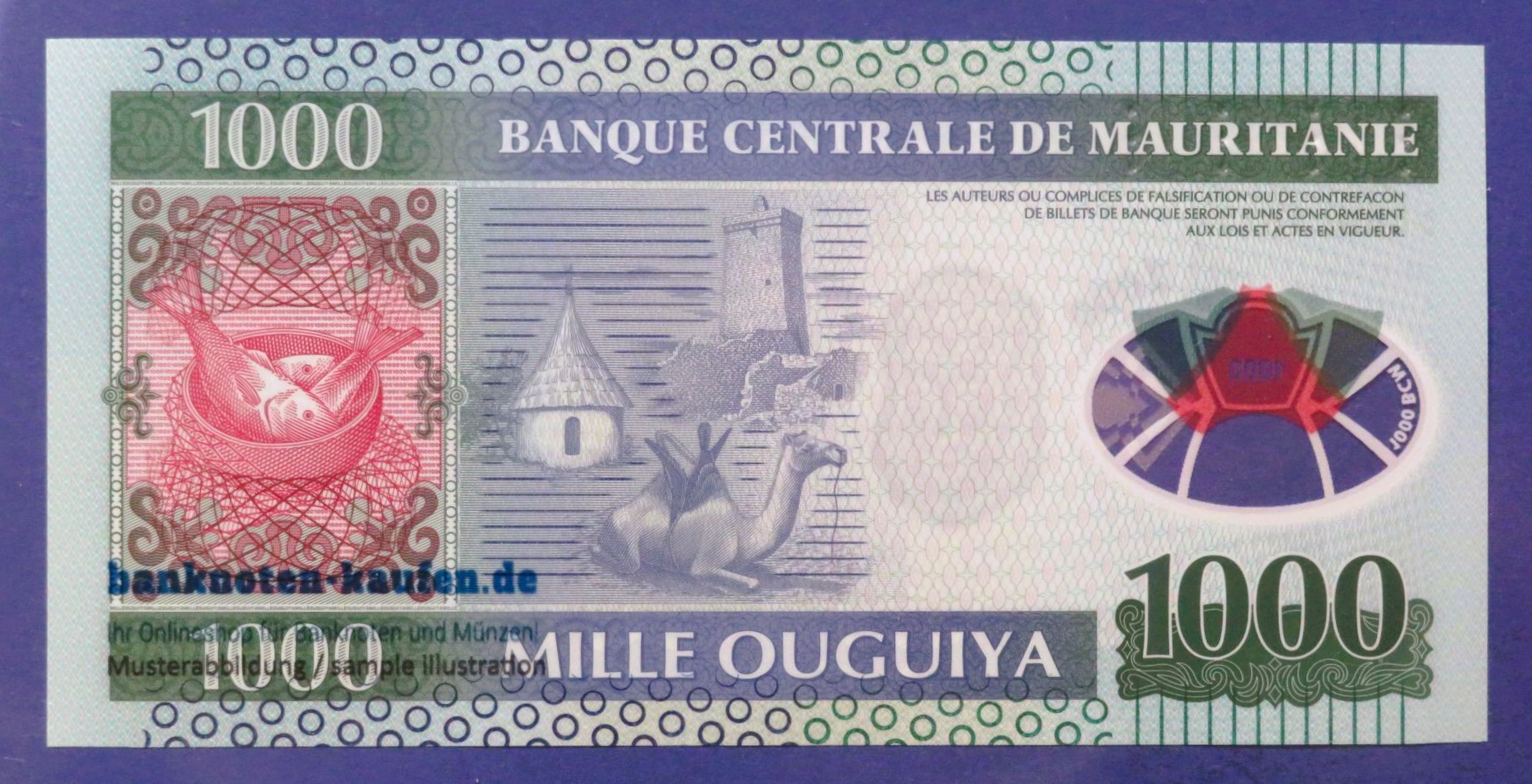 Produktinformation "Mauretanien, 1.000 Ouguiya, 2014, kassenfrisch (UNC), Polymer, P-19"