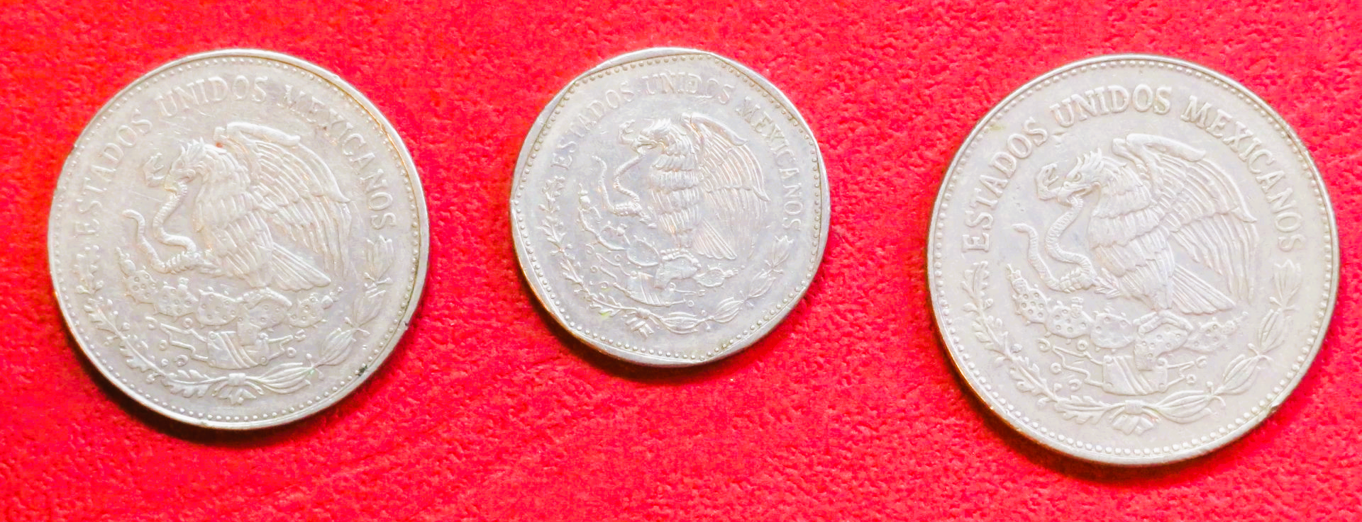Mexiko Set 3: Lot 3 Münzen, 5/20/50 Pesos, Serie 1980-1985, gebraucht (USED / ss)