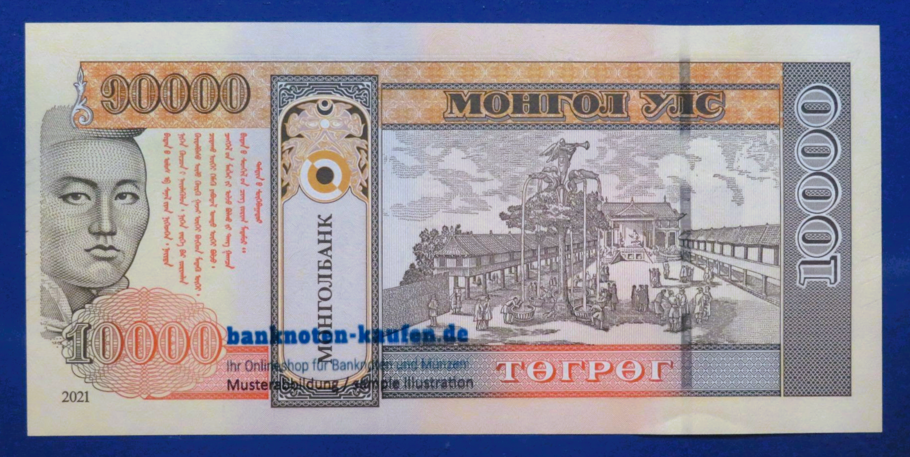 Mongolei, 10.000 Tugrik, 2021, kassenfrisch (UNC), Gedenkausgabe, P-79