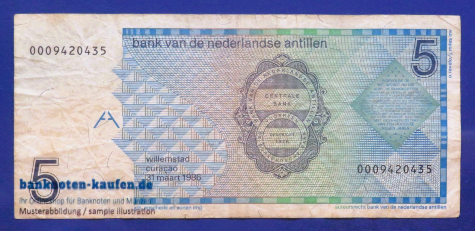 Niederländische Antillen, 5 Gulden, 1986, gebraucht (USED / F), P-22a