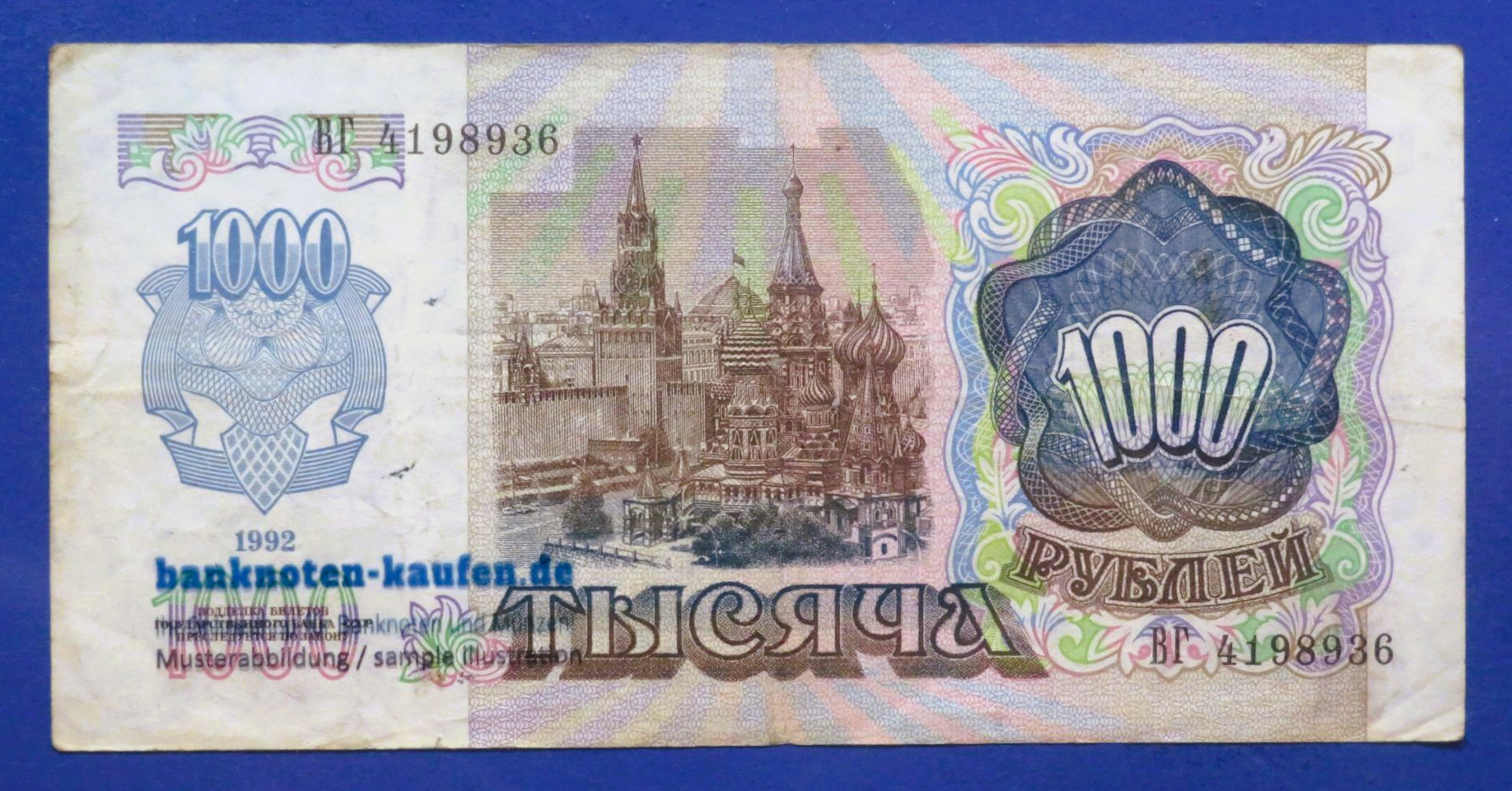 Russland, 1.000 Rubel, 1992, gebrauchte Erhaltung (USED / VF), P-250