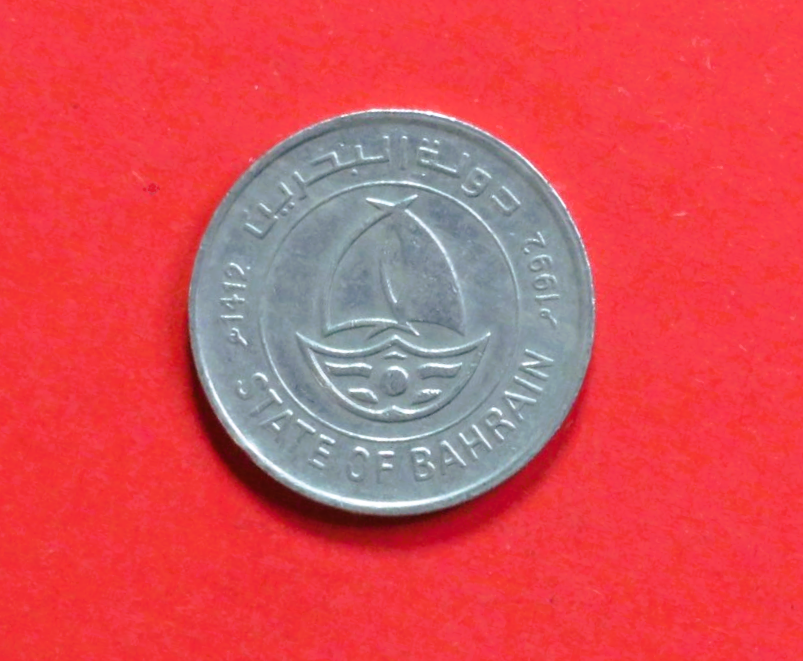 Bahrain: 50 Fils, 1992-2001, circulated (used / ss) "State of Bahrain"