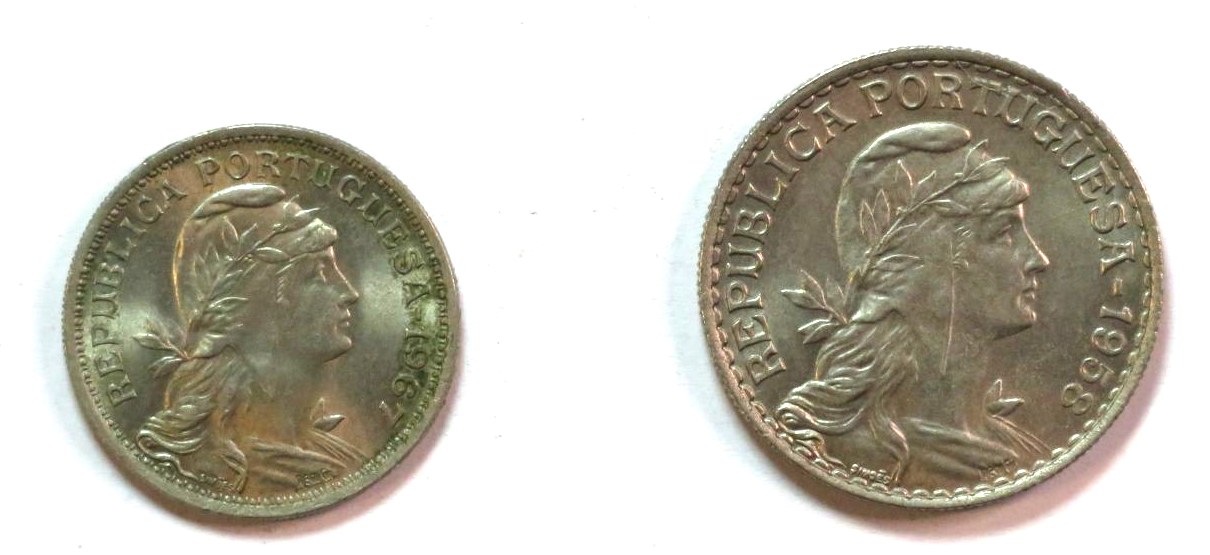 Portugal - Set 1: set of 2 coins, 0,5 + 1 Escudo, 1927-1968, circulated condition (USED / vf)