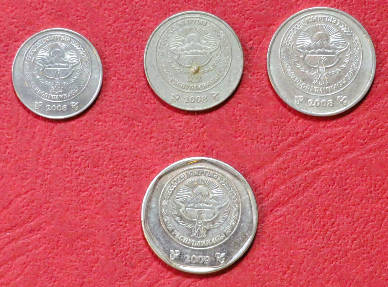 Kyrgyzstan - Set 1: set of 4 coins, 1-10 Som, since 2008, circulated (USED / vf)