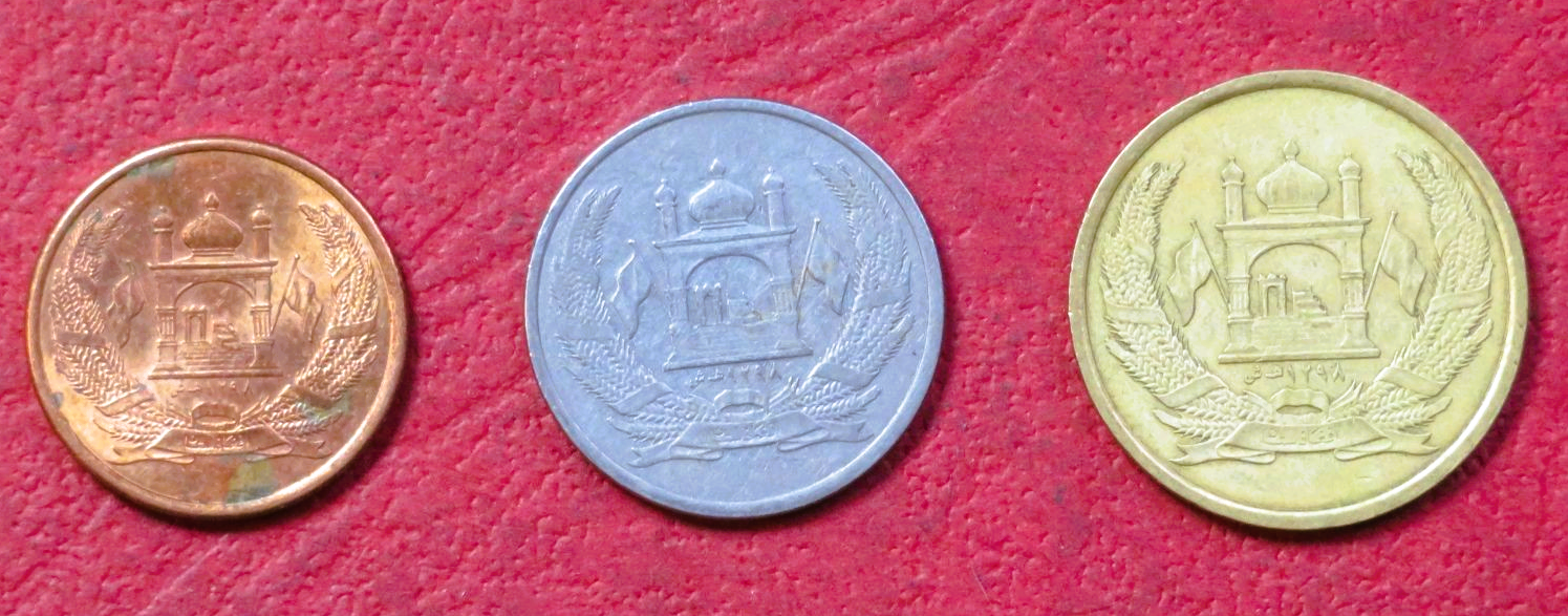 Afghanistan: 1/2/5 Afghani, 1383/2004, circulated (USED / vf+), #150-152