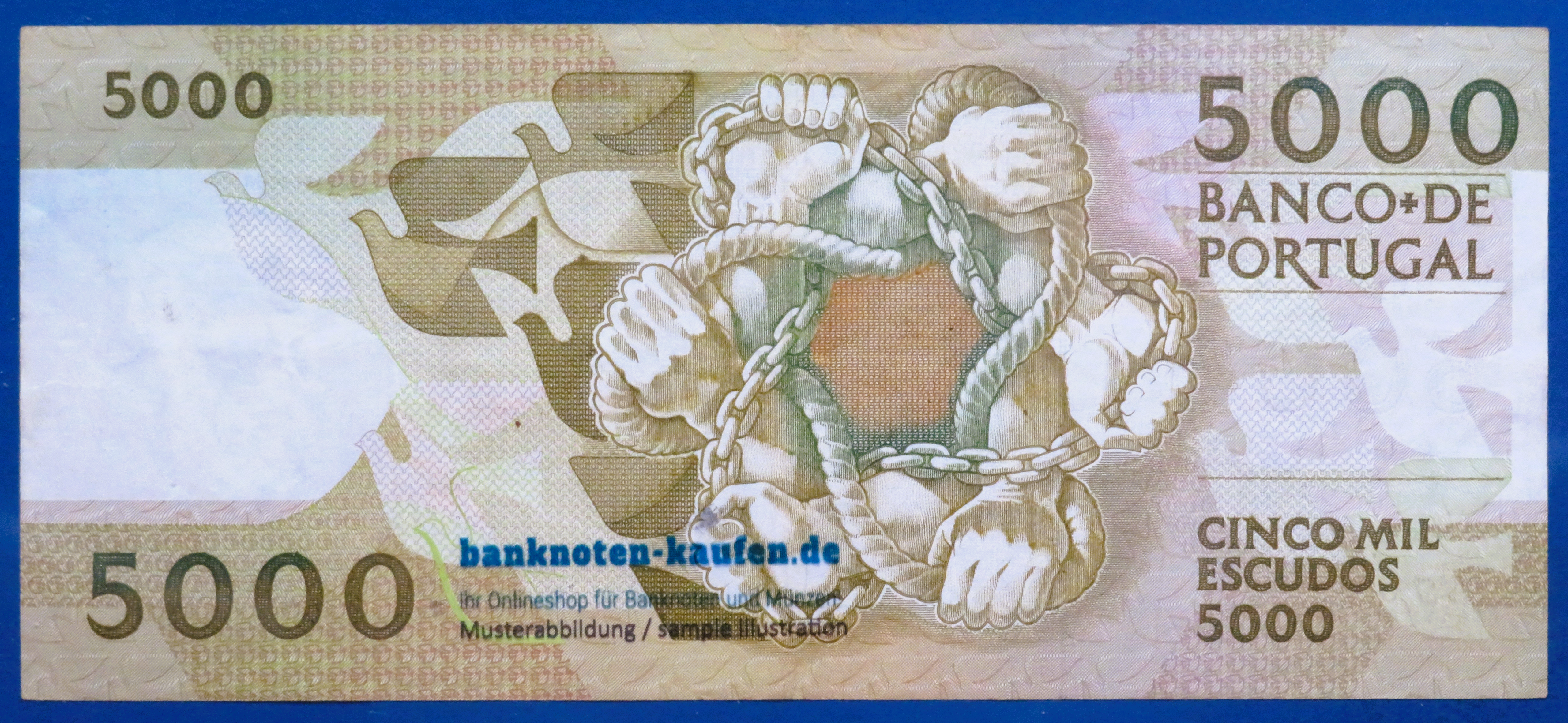 Product information "Portugal - 5,000 Escudos, 1989, circulated (USED / VF+), P-184c"